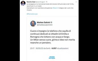 Gozi pubblica lo screenshot: "Vergogna e mancanza totale del dovere istituzionale e del limite, racchiuso in un tweet". Carfagna: "Un po' ministro, un po' ultras". I dem: "Inadeguato e indegno"