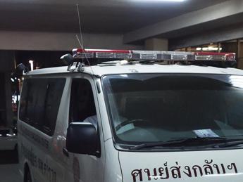 La donna, italiana, si è appoggiata a un traliccio mentre intratteneva con una spiegazione gli studenti che aveva accompagnato per una visita della città