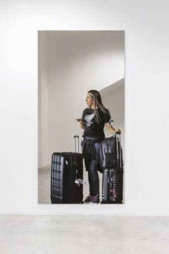 “Ragazza con valigie e smartphone” in cui Pistoletto immortala
