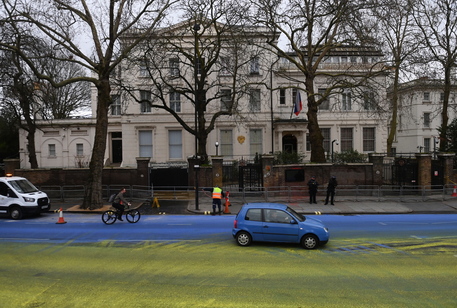 A formare una mega bandiera di Kiev. La polizia Gb ne arresta 4