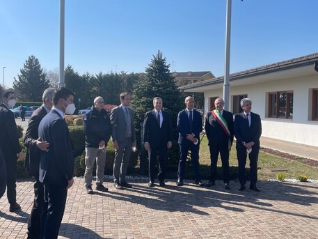 Ad accogliere il premier, tra gli altri, Massimiliano Fedriga