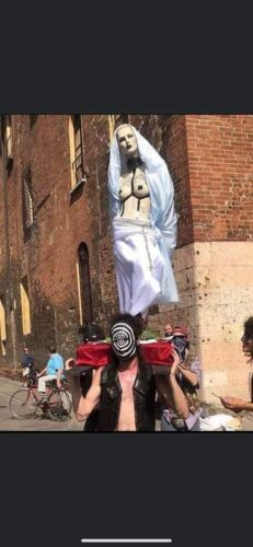 accusa, in particolare, l’esibizione in corteo di una bambola a