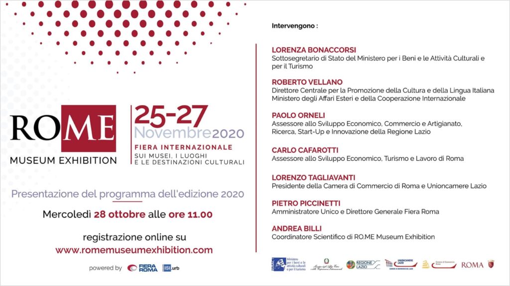 Dal 25 al 27 novembre la terza edizione della mostra della cultura che avverrà attraverso la piattaforma romemuseumexhibition.com