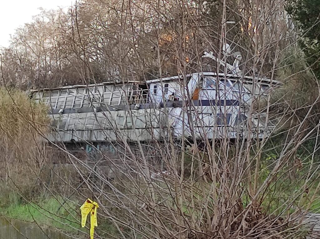 Lunga 37 metri e larga otto, la motonave è naufragata su una banchina nel dicembre del 2008, ma l'area non è mai stata bonificata