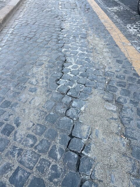 Su quel tratti di strada lavori in corso per il 5G, ma il selciato non è stato riposizionato in modo corretto