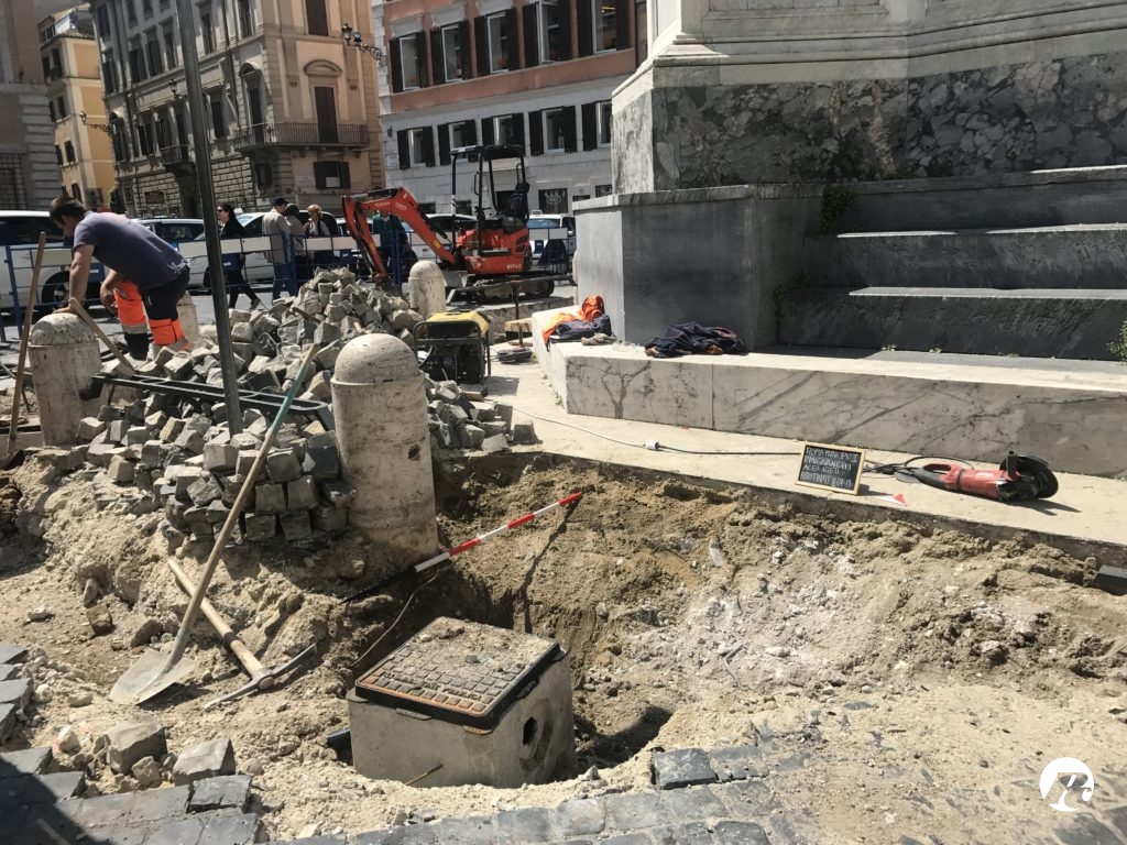 Per illuminare la colonna con l'Immacolata Concezione Acea stravolge p.zza Mignanelli intralciando il passaggio degli innumerevoli turisti e dei cittadini