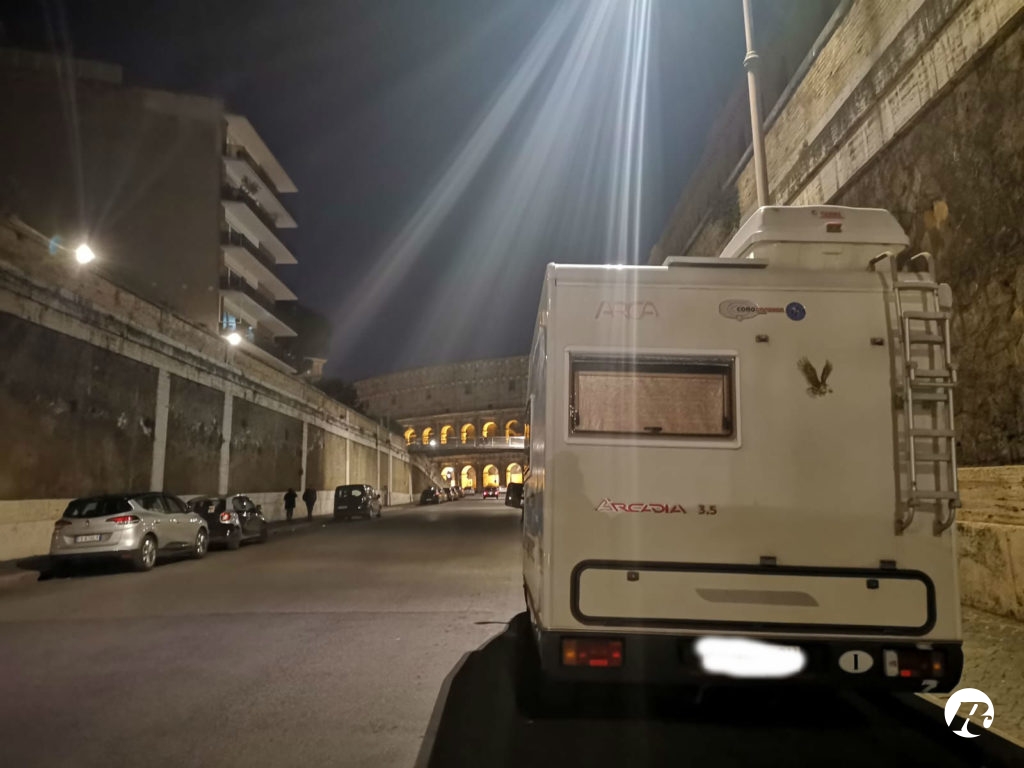 Un camper, in visita a Roma, sceglie il bivacco con vista sul Colosseo. Peccato, però, che sia in sosta vietatissima!!