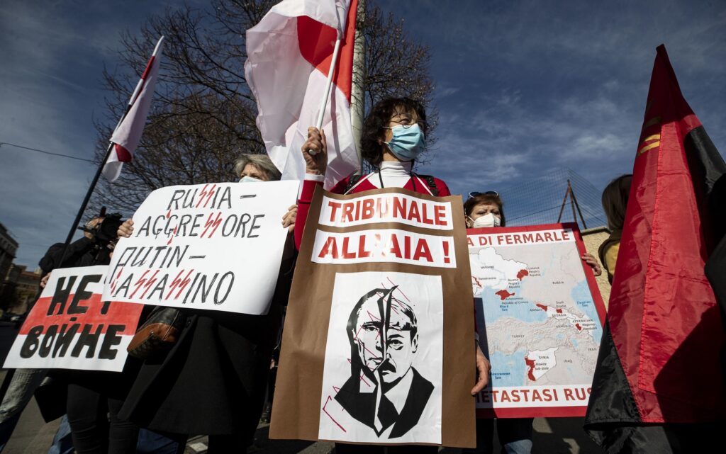 "Putin aggressore e assassino". Oltre 200 persone per protestare contro l'aggressione. Letta, unità mondo libero unico modo per battere Putin. Gualtieri, oggi giornata cupa, ferma condanna. Zingaretti, pagina buia, tornano le bombe in Europa