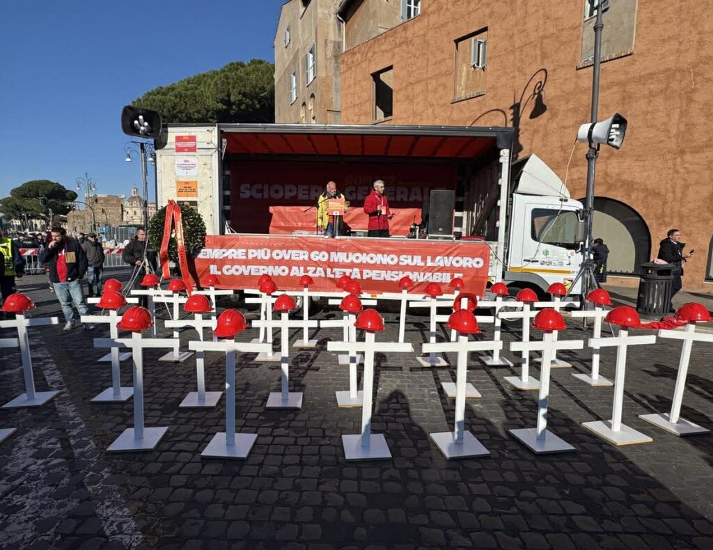 Il corteo si è concluso in via dei Fori Imperiali, vicino alla Torre dei Conti, dove poco più di un mese fa ha perso la vita l’operaio Octav Stroici