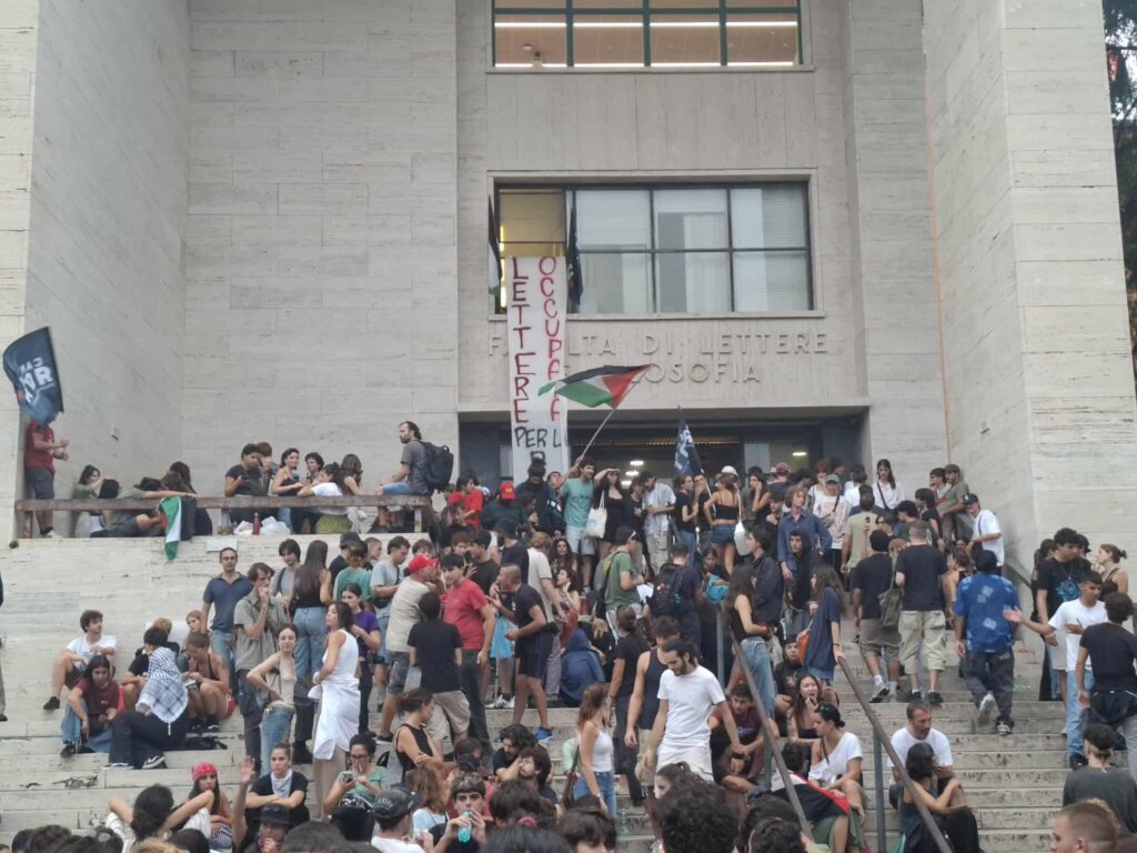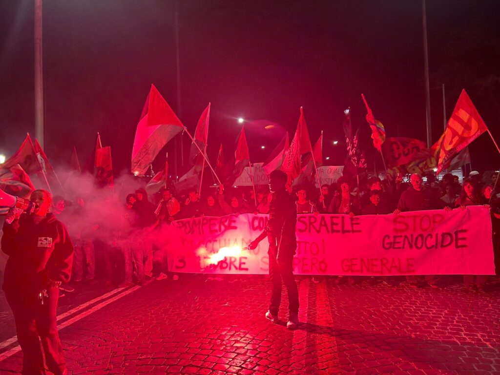 Alla testa della manifestazione sono presenti, tra gli altri, il segretario generale della Cgil, Maurizio Landini, il segretario generale della Cgil di Roma e del Lazio, Natale Di Cola, e il presidente della Comunità palestinese di Roma, Yousef Salman
