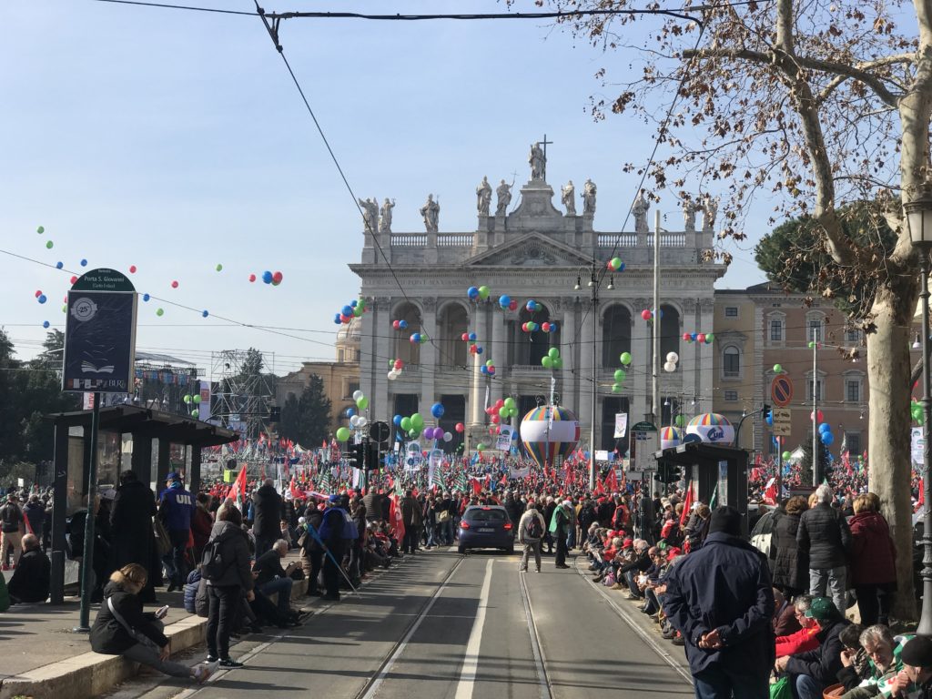 Circa 400 mila persone nel centro di Roma e a piazza San Giovanni. Cgil, Cisl e Uil: dobbiamo evitare la recessione