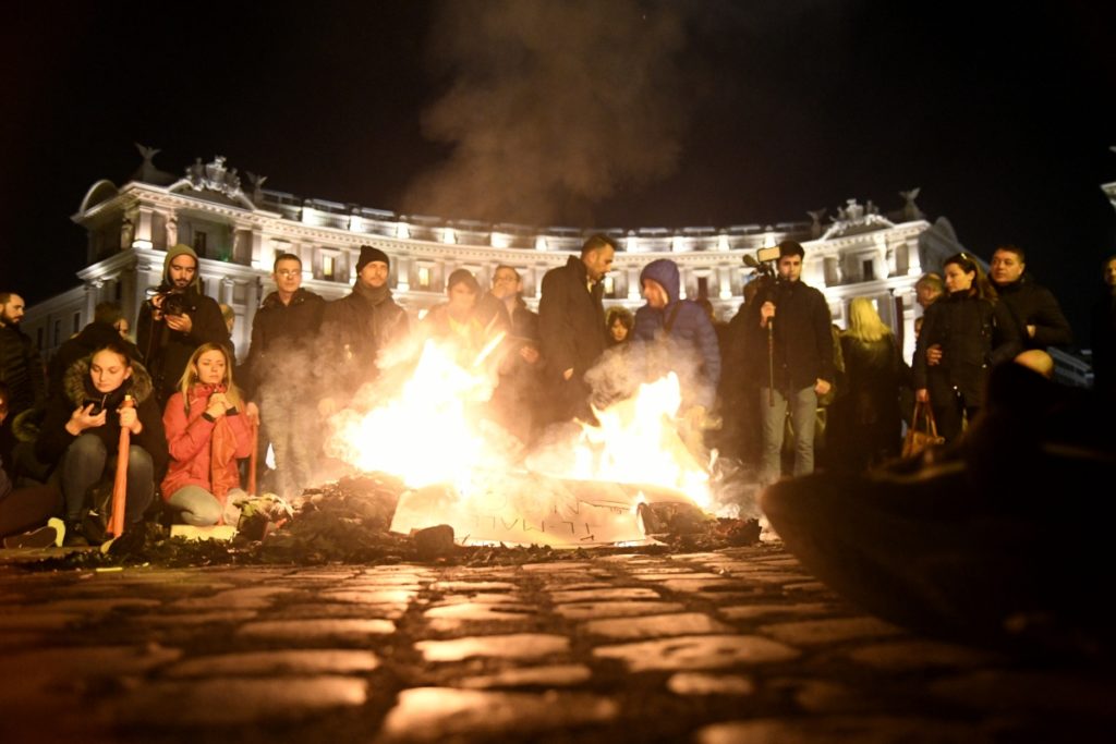 Tensione con le associazioni di categoria che avevano invitato i manifestanti ad andare via. A fuoco un manichino con la faccia di Di Maio