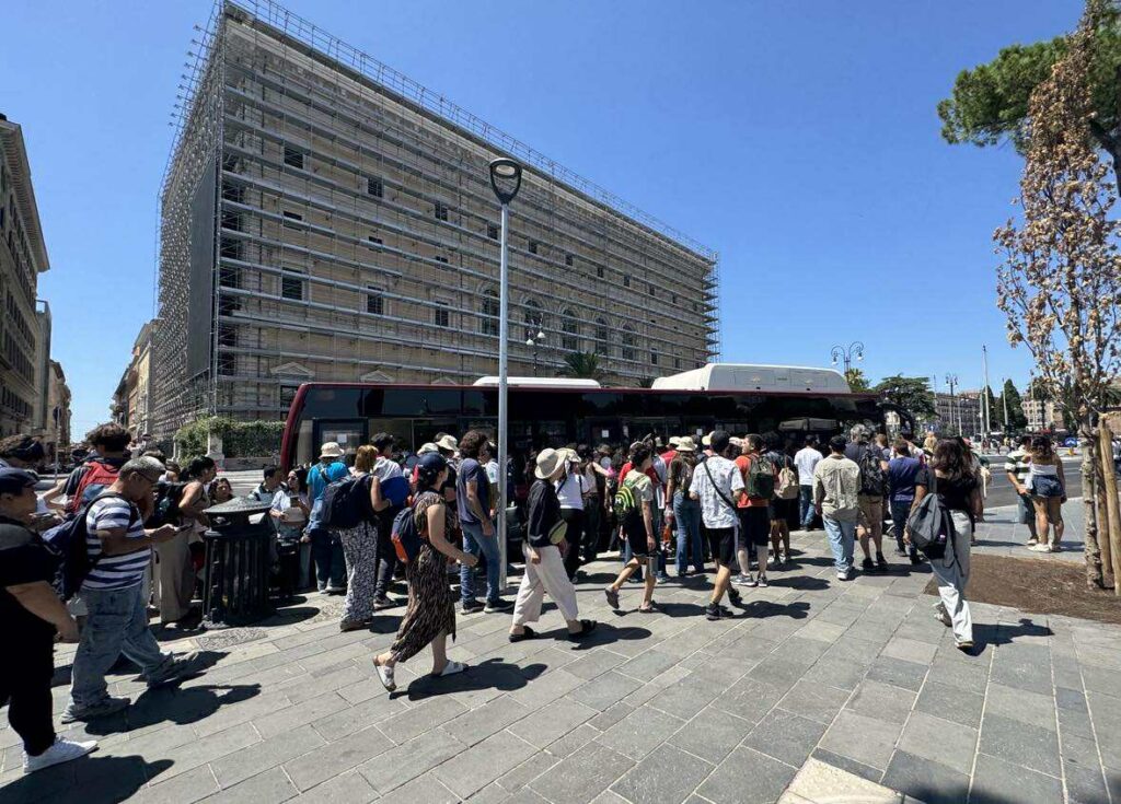 Nel primo pomeriggio il servizio è tornato regolare. Oggi l'hub di piazza dei Cinquecento come anche gli altri mezzi di trasporto erano sovraffollati dal mattino per i gruppi di giovani diretti o al Circo Massimo o a San Pietro