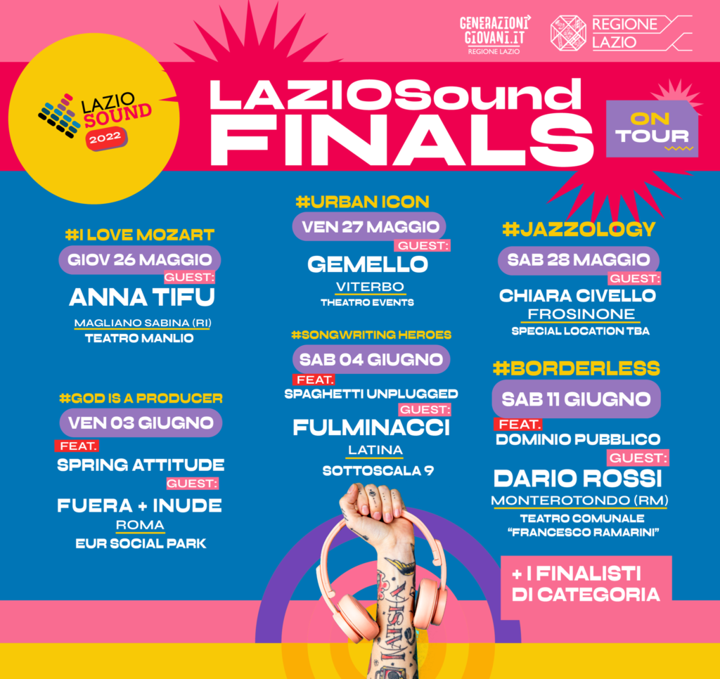 Anna Tifu il 26 maggio al Teatro Manilo di Magliano Sabina (RI), Gemello il 27 maggio al Theatro Events di Viterbo, Chiara Civello il 28 maggio alla Certosa di Trisulti di Collepardo (Fr), Inude il 3 giugno all'Eur Social Park di Roma, Fulminacci il 4 giugno al Sottoscala di Latina e il percussionista Dario Rossi l'11 giugno al Teatro Comunale 'Francesco Ramarini' di Monterotondo