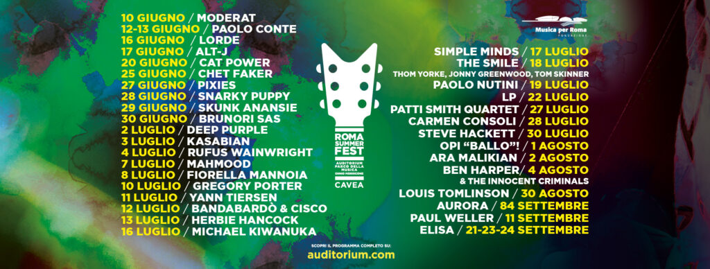 In piazza San Giovanni, da Carmen Consoli a Colapesce. Grandi performer in cartellone anche nelle due kermesse ormai storiche per la Capitale: il Roma Summer Fest all'Auditorium Parco della Musica, a Rock in Roma all'Ippodromo delle Capannelle