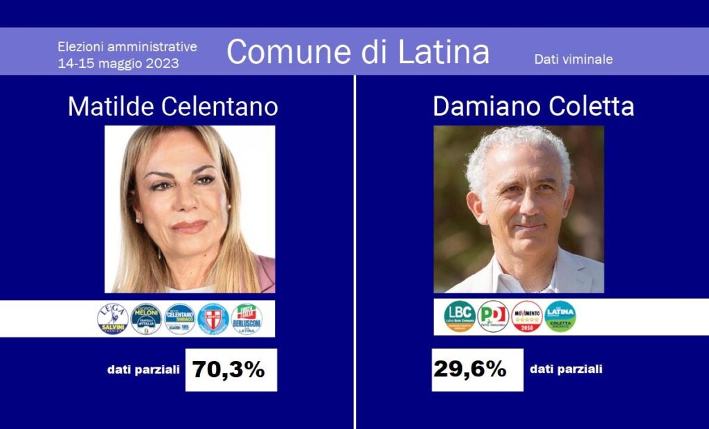 Tra i comuni che vanno al voto nel Lazio troviamo Latina, dove sono in corsa due candidati: Matilde Eleonora Celentano per il centrodestra e Damiano Coletta per il centrosinistra.