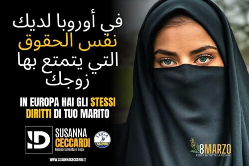 Un centinaio di manifesti targati Lega con l’immagine di una donna araba velata sono apparsi sui muri della strade di Roma in occasione dell’8 marzo, con la scritta, sia in arabo sia in italiano, “In Europa hai gli stessi diritti di tuo marito”. Un messaggio che non è piaciuto al Consiglio degli ambasciatori arabi a Roma che esprime “profonda insoddisfazione, decisa critica e rifiuto”.