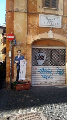 Il primo in Vicolo della Torretta, protagonista questa volta, dopo il disegno ormai ‘famoso’ del bacio tra Matteo Salvini e Luigi Di Maio, è il Premier Giuseppe Conte, ritratto con in mano il contratto di Governo con la scritta “Lista di cose da fare per salvare il Paese”.