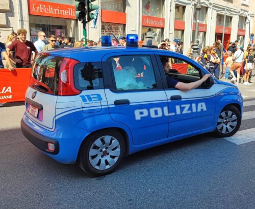In auto della polizia, due agenti, hanno accompagnato all’altare la sposa intrappolata nel traffico romano dovuto al Giro d’Italia.