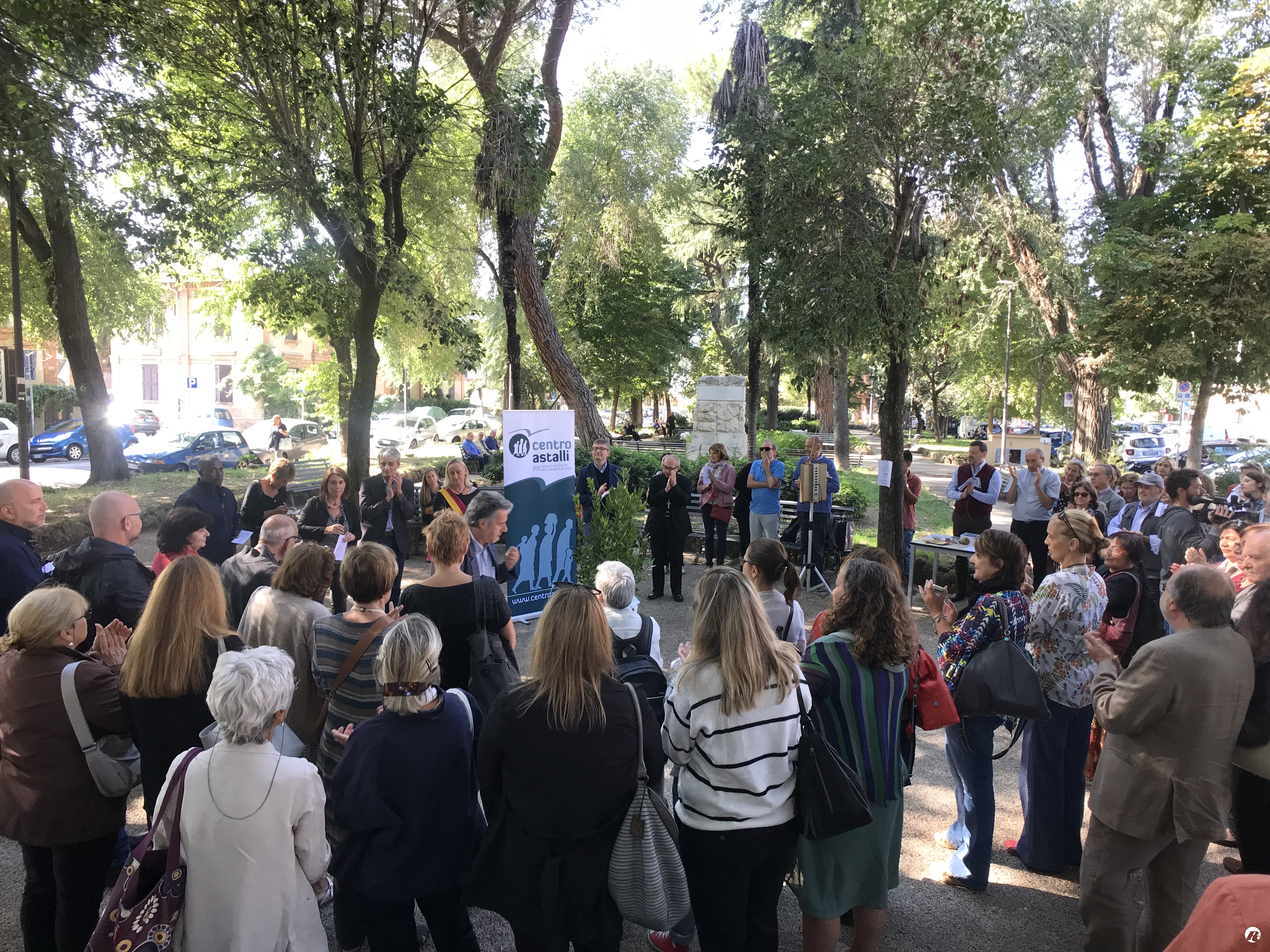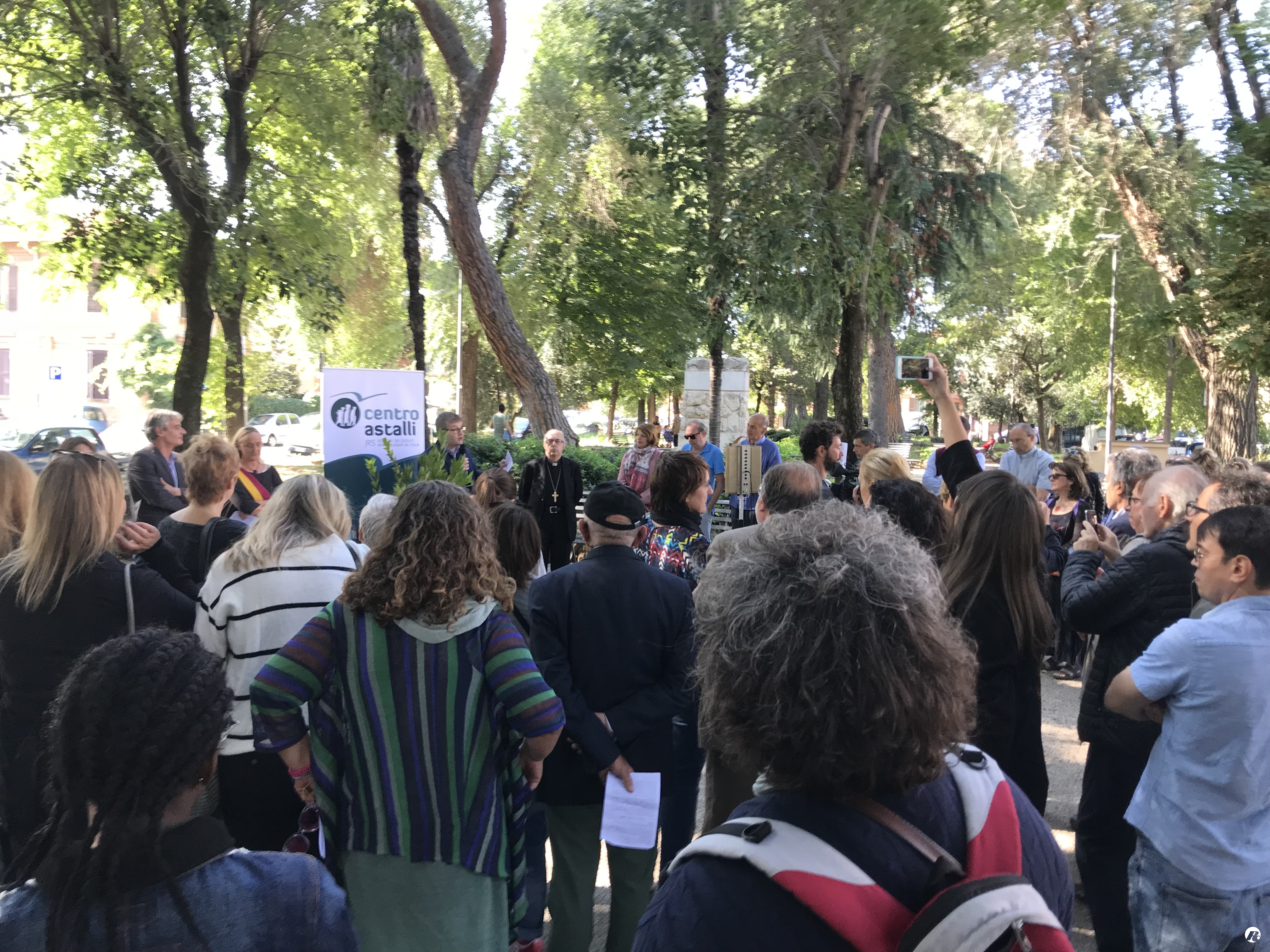 Presenti, tra gli altri,  Gianrico Ruzza, vescovo ausiliare di Roma, i rifugiati del Centro di San Saba, gli studenti delle scuole e gli abitanti del quartiere.