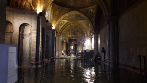 Il centro maree del Comune ha attivato le sirene di allarme. Attualmente il livello è di 115 centimetri, con piazza San Marco già abbondantemente allagata. Il cielo è plumbeo, con vento teso, anche se non da scirocco, e non piove. La marea sta crescendo velocemente, come segnalato dalle centraline in mare aperto. Anche i vaporetti sono costretti a variazioni di percorso.