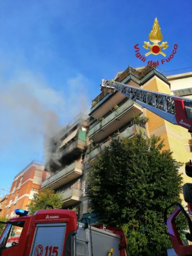 Il fumo che esce dall'appartamento incendiato