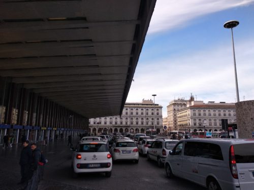 I tassisti fermi agli stalli della stazione Termini di Roma.