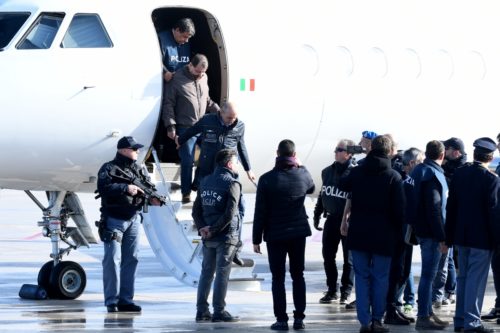 Cesare Battisti scende a Ciampino dal Falcon dell'Aeronautica militare il 14 gennaio 2019, dopo essere stato estradato dalla Bolivia