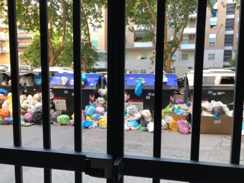 Siamo a Lucio Sestio, cuore della Tuscolana a metà strada tra Don Bosco e il Parco degli Acquedotti. Nella sera del 21 giugno, appena si esce dalla metro e si percorrono i corridoi che portano all’uscita, si viene travolti da un forte olezzo. Ci si guarda attorno cercando di capire le ragioni, che vengono comprese solo quando si sale in superficie. L’odore dei rifiuti – spappolati dal sole e delle alte temperature – ha ricoperto il quartiere di un’aria insopportabile. Ventate nauseabonde accompagnano i passanti che – tra il disgustato e il rassegnato – camminano per raggiungere la propria abitazione o la metropolitana. Un mezzo di lavoro, accanto alla fermata della Metro A, rifà le strisce pedonali. L’odore di vernice, seppur tossico, paradossalmente dà un po’ di tregua all’olfatto.