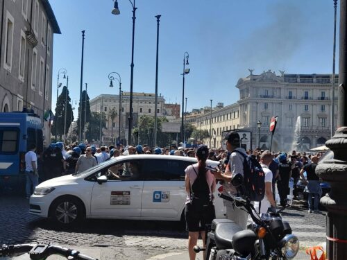 Bombe carta, fumogeni e polizia in assetto antisommossa per un centinaio di manifestanti in piazza della Repubblica a Roma. Si tratta di pescatori arrivati da tutta Italia e in protesta contro il caro gasolio. Al momento accanto a due blindati della polizia ci sono persone riunite che discutono con le forze dell’ordine. È in corso una trattativa con alcuni gruppi di manifestanti che si sono distaccati per dissociarsi dal lancio di petardi.