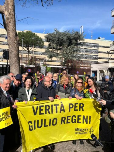 E’ in corso fuori dal tribunale di Roma, a piazzale Clodio, un sit in per chiedere verità su Giulio Regeni, il ricercatore italiano sequestrato, torturato e ucciso in Egitto nel 2016. Oggi è fissata una nuova udienza del processo nei confronti dei quattro uomini dei servizi egiziani imputati per l’omicidio. Presente anche la segretaria del Pd Elly Schlein che ha dichiarato:” sit in è necessario per dare un segnale di vicinanza alla famiglia di Giulio, alle tante persone che in questi anni non hanno mai smesso di chiedere verità e giustizia”. “Crediamo fortemente che questo processo debba andare avanti, debba essere fatto”, ha sottolineato Schlein che ha concluso: “Siamo qui con questa speranza”.