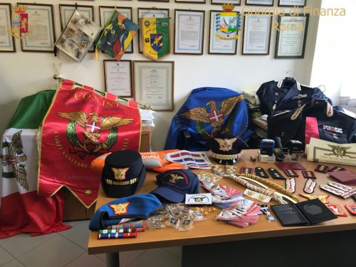 Una finta associazione, ramificata in tutta Italia e con base ai Castelli Romani, è stata scoperta dai Finanzieri del Comando Provinciale di Roma e dai Poliziotti della Questura capitolina, che hanno denunciato tre persone all’Autorità Giudiziaria di Velletri per i reati di utilizzo di segni distintivi contraffatti nonché di raccolta, detenzione e vendita di uniformi militari senza la licenza, in violazione del Testo Unico delle Leggi di Pubblica Sicurezza.