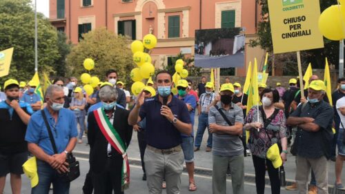Tanti gli striscioni, dove si legge “Dopo il Covid la peste dei cinghiali”, “Noi seminiamo, i cinghiali raccolgono”, “Difendiamo il nostro territorio”, ma anche “Città e campagna unite contro i cinghiali”. In piazza presenti molti sindaci e cittadini preoccupati di questa vera e propria emergenza, come anche il presidente nazionale della Coldiretti Ettore Prandini.