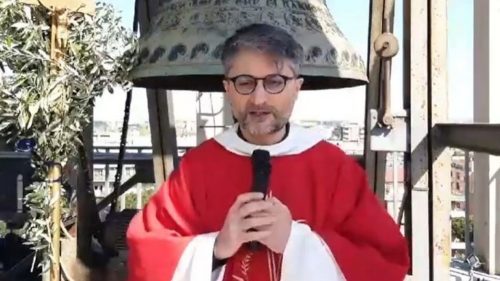 E’ salito su un balconcino del campanile della parrocchia e ha iniziato a dire la messa con un altoparlante, richiamando diversi abitanti della zona. E’ accaduto nel quartiere Tor de’ Schiavi, alla periferia di Roma, nella parrocchia di largo Agosta. In tempi di Coronavirus le messe avvengono solo on line.