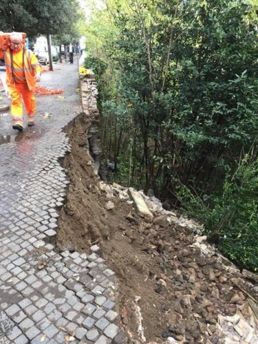 A quanto riferito da fonti della Polizia locale, il muro si trova su viale Trinità dei Monti in direzione Pincio subito dopo Villa Medici.