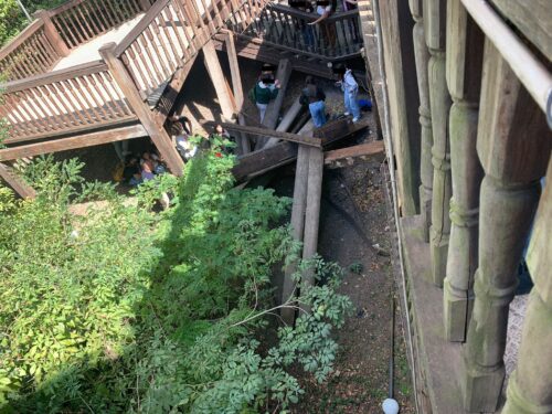 Il momento del crollo della scala dall'interno.