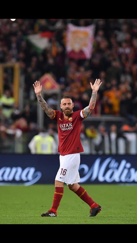 A far correre i brividi lungo la schiena ai 62mila dell’Olimpico non ci ha pensato il goleador di turno ma l’ultimo simbolo di Roma. E Roma, con l’Olimpico, lo ha salutato in un’atmosfera di struggente malinconia, di catarsi collettiva. DDR, 36 anni a luglio, si è tolto per l’ultima volta la sua seconda pelle e la fascia da capitano, consegnandola a Florenzi, perchè la vita continua e c’è un futuro come ha raccontato ieri il suo ‘arrivederci’.
