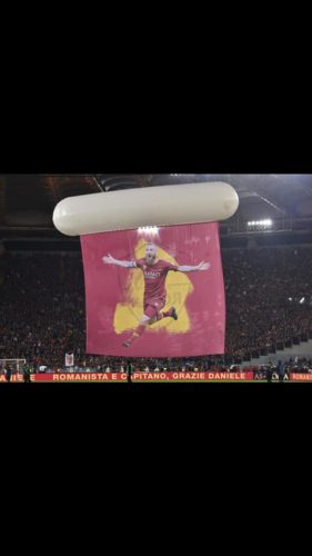 DDR esce di scena mano nella mano alla contestazione che sta accompagnando James Pallotta in giro per mezzo mondo, lo fa prima lasciando il campo al minuto 82, poi con l’ultimo giro di campo, emozionante, unico, come solo Roma può regalarti, una città dove si vince poco ma che ti regala l’eternità.