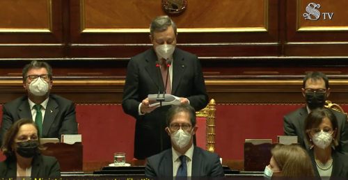 “Questo è lo spirito repubblicano di un governo che nasce in una situazione di emergenza raccogliendo l’alta indicazione del capo dello Stato”, sottolinea il premier. “La crescita di un’economia di un Paese non scaturisce solo da fattori economici. Dipende dalle istituzioni, dalla fiducia dei cittadini verso di esse, dalla condivisione di valori e di speranze. Gli stessi fattori determinano il progresso di un Paese”. E ancora: “Si è detto e scritto che questo governo è stato reso necessario dal fallimento della politica. Mi sia consentito di non essere d’accordo. Nessuno fa un passo indietro rispetto alla propria identità ma semmai, in un nuovo e del tutto inconsueto perimetro di collaborazione, ne fa uno avanti nel rispondere alle necessità del Paese, nell’avvicinarsi ai problemi quotidiani delle famiglie e delle imprese che ben sanno quando è il momento di lavorare insieme, senza pregiudizi e rivalità”, osserva Draghi.
