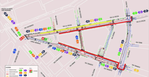 Oggi partiranno i lavori che rivoluzioneranno l’aspetto e la mobilità del cuore di San Giovanni. Come raccontato da Radiocolonna, il progetto prevede la pedonalizzazione totale di largo Brindisi, la creazione di due piste ciclabili, una su via la Spezia e l’altra su via Taranto, due strade che diventeranno a senso unico: Via La Spezia in direzione Largo Brindisi e Via Taranto in direzione piazza Ragusa. Al centro del nuovo Largo Brindisi, poi, ci saranno posteggi riservati alle biciclette e un’area pedonale il cui aspetto – e vivibilità – è ancora avvolto nel mistero. È proprio sull’aspetto di Largo Brindisi che si concentrano le maggiori perplessità di Ulderico Sconci di Salviamo La Metro C, il gruppo che suggerisce idee e muove critiche sulla mobilità capitolina.