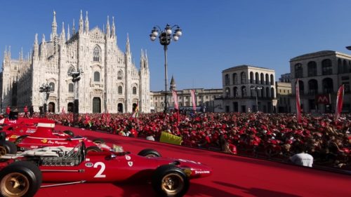 La Ferrari ha festeggiato i 90 anni con una “sfilata” in piazza Duomo a Milano. Ieri sul palco le auto che hanno fatto la storia del cavallino, classiche e moderne, diventate celebri grazie a piloti come Clay Regazzoni, Gilles Villeneuve e Michael Schumacher.