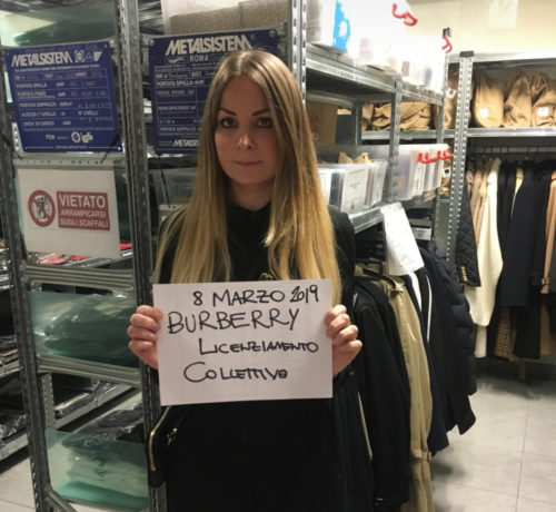 “Questa azienda – afferma Francesco Iacovone dell’esecutivo Cobas – non è nuova ad atteggiamenti lesivi della dignità dei lavoratori: dallo scandalo della boutique di via dei Condotti, fino al questionario shock che chiedeva ‘razza’ e orientamento sessuale dei dipendenti è ora di mettere un argine a tanta arroganza e allo spregio che Burberry mostra in ormai troppe occasioni”.