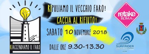 L’ iniziativa ‘Caccia al rifiuto – Ripuliamo il vecchio faro’ – patrocinata dal Comune di Fiumicino, con la collaborazione di Retake Roma e Surfrider Foundation Europe Roma – partirà sabato prossimo dalla zona vicina al vecchio Faro alle ore 9:30.