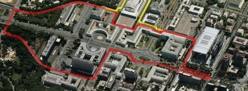 Il percorso dell’Eur si snoda su 2,8 km compresi fra via Cristoforo Colombo ed il Palazzo dei Congressi e verrà suddiviso in due anelli uno interno ed uno più esterno al circuito. In questo perimetro sarà chiuso il transito ai veicoli, mentre lo sarà parzialmente per i pedoni. In particolare dalle 20,30 del 10 aprile alle 5,30 del 15 aprile la Cristoforo Colombo resterà chiusa tra l’incrocio di via Laurentina e via dell’Oceano Atlantico.