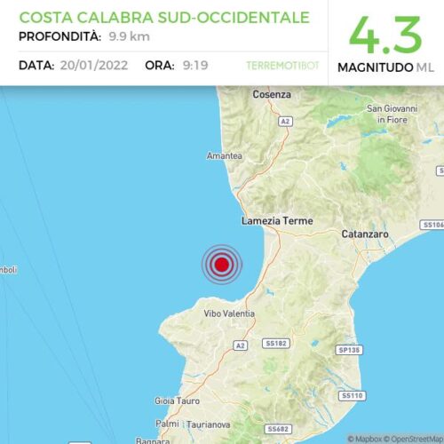 Una scossa di terremoto di magnitudo 4.3 è stata registrata in Calabria. Il sisma è stato avvertito, in particolare, nella zona del vibonese, dove sarebbe stato localizzato l’epicentro.