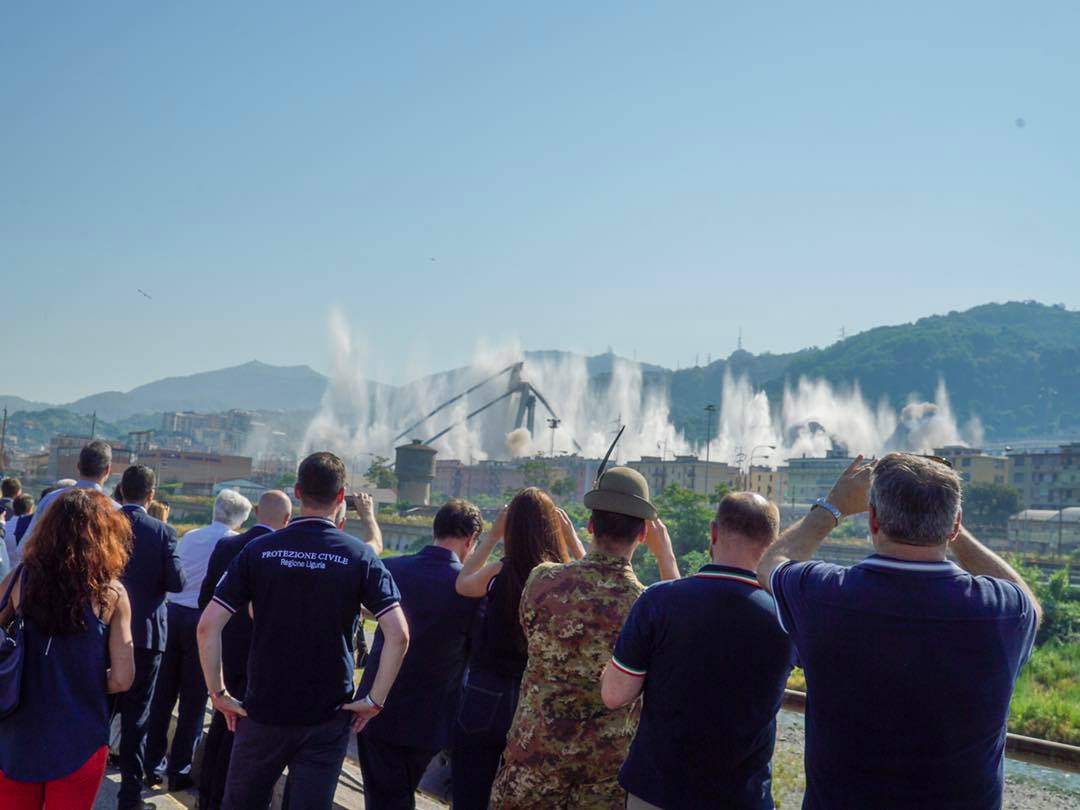 Con un sordo boato, alle 9:37 la dinamite e il plastico collocati su piloni e stralli delle pile 10 e 11 dell’ex viadotto Morandi hanno fatto collassare la struttura. A 11 mesi dalla tragedia che ha sconvolto Genova, nella zona est del cantiere lungo il Polcevera può definitivamente partire la ricostruzione.