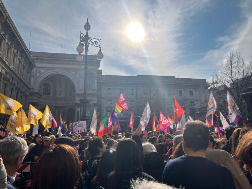 Sul palco in piazza della Scala, Davide racconta che lui e il suo compagno stanno insieme da 14 anni: “Ci siamo uniti civilmente quattro anni fa e siamo genitori da 46 giorni. Ad oggi non abbiamo il rinascimento dello status di cittadino italiano di nostro figlio. Martino Libero è nato in Oregon uno degli stati Usa che prevede il percorso di gestazione per altri, normato a tutela della donna che porta avanti la gravidanza surrogata, a differenza di quanto sostiene ancora oggi la ministra Roccella”.