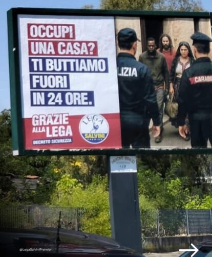 Continua la polemica sui manifesti della Lega contro chi occupa le case e censurati dal Campidoglio. “La scelta del Comune di Roma di vietare i manifesti della Lega sul Decreto sicurezza è grave, inaccettabile e incostituzionale. Secondo il Campidoglio, i manifesti sono da censurare perché nelle immagini create artificialmente ci sarebbero ‘una persona di etnia rom’ pizzicata a delinquere in metro e ‘una persona di colore, una di etnia rom e una persona alternativa’ nel manifesto sulle occupazioni abusive. Ci appelliamo al rispetto dell’articolo 21 della Costituzione. ‘Tutti hanno diritto di manifestare liberamente il proprio pensiero con la parola, lo scritto e ogni altro mezzo di diffusione. La stampa non può essere soggetta ad autorizzazioni o censure'”. Così una nota della Lega. ”