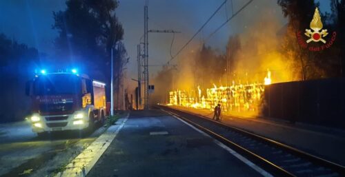 La circolazione ferroviaria e’ sospesa per l’intera giornata di oggi sulla tratta Roma San Pietro-Vigna Clara, nel nodo di Roma, a seguito dei danni provocati dall’incendio che ieri ha interessato la zona, nei pressi della linea ferroviaria. La circolazione era stata interrotta dalle 15 di ieri 4 luglio. Lo riferisce in una nota Ferrovie dello Stato Italiane. Le fiamme hanno danneggiato alcuni cavi del segnalamento e le barriere antirumore installate lungo la linea. I tecnici di Rfi sono al lavoro per ripristinare la piena funzionalita’ dell’infrastruttura.