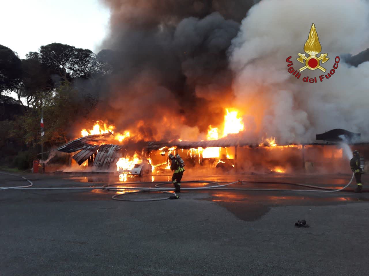 Il rogo si è sprigionato nella parte superiore dei locali coinvolgendo anche un’auto parcheggiata vicino. Nessuna persona è rimasta coinvolta ma i vigili del fuoco sono ancora al lavoro per circoscrivere l’incendio e preservare la pineta. Carabinieri e polizia locale sono sul posto.